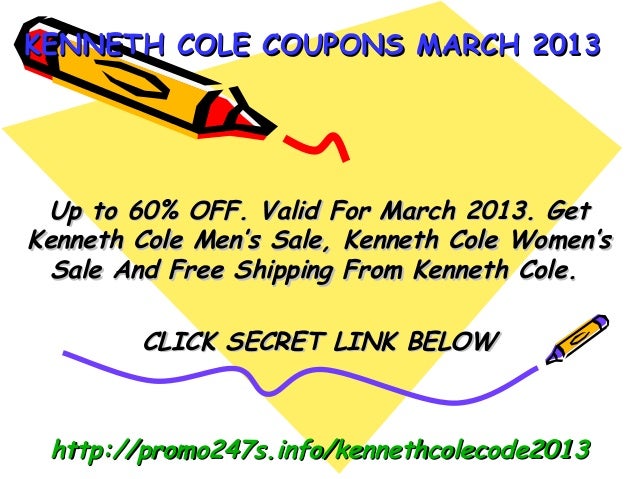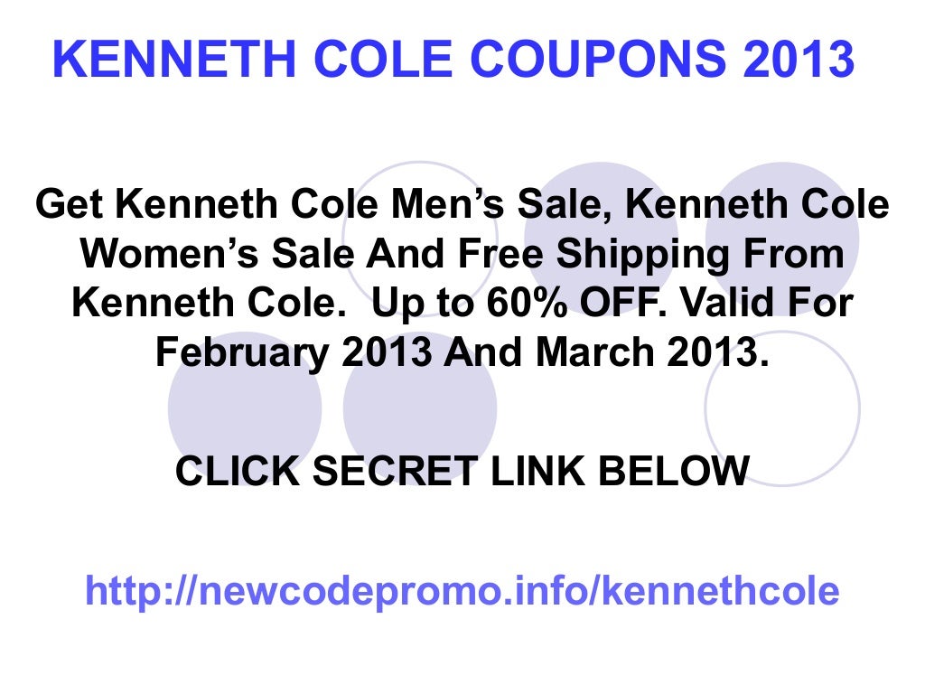 40% Off Kenneth Cole Coupons & Promo Codes - August 2022 40% Off Kenneth Cole Coupons & Promo Codes - August 2022 You've earned $0 in cashback . Sign up to activate! Kenneth Cole Coupons, Discounts and Promo Codes 13 Verified Coupons for August 01, 2022 Earn 5% Cash Back at Kenneth Cole No expiration Sign Up CODE 30% OFF 30% Off Your Purchase expires: ongoing Used 111 timesLast Used about 15 hours ago