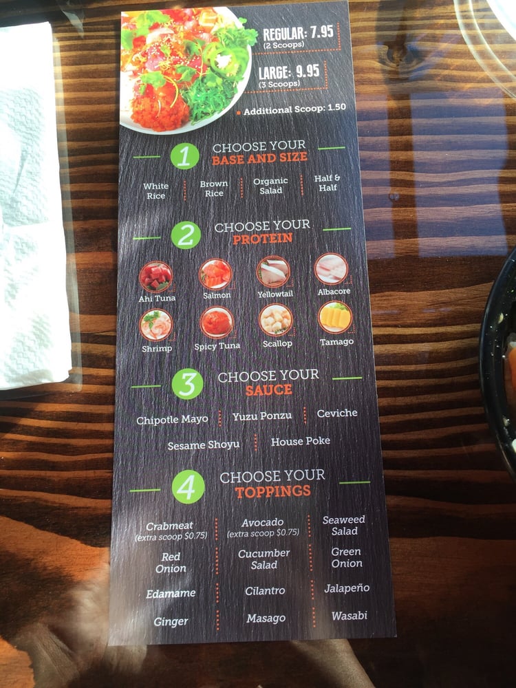 Poke N Sides - Hilo Farmers Market Poke N Sides. We Offer Fresh Poke Bowls and Side Salad Dishes of Farmers Market Fresh Vegetables along with Loco Mocos, Juicy Burgers and Fries. We Exclusively Use 100 % Grass Fed Hawaii Island Beef and Serve Daily and Seasonal Local Specials. New Hours: Monday 10:00 am to 3:00 pm. Tuesday 10:00 am to 3:00 pm. Poke N' Ramen menu - Arnold MD 21012 - (443) 775-5837 - Allmenus Salmon Lover Poke Bowl $14.50. Salmon, masago, scallions, sesame seeds, cucumber, avocado, edamame, onion, kale, lettuce, nori strips, garlic, black pepper sauce. P6. The Green Bowl $12.50. Mixed green, pineapple, mango, avocado, cucumber, carrots, onion, kale, edamame, and honey mango sauce. Menu - Poke Bowl Create Your Own Poké Bowl. STEP 1. Pick Your Size. Small Bowl (2 scoops of protein) $12.50. Regular Bowl (3 scoops of protein) $14.75. Large Bowl (5 scoops of protein) $17.95. STEP 2. Pick Your Base. Poke Bros - Hawaiian Style Fresh Fish Poke Bowls Poké is essentially sushi in a bowl. This fresh healthy cuisine originated from Hawaii and features cubed-cut raw fish mixed in a bowl with rice, veggies and flavorful toppings. A build-your-own approach allows you to craft your bowl with all of the fresh and healthy ingredients you like.