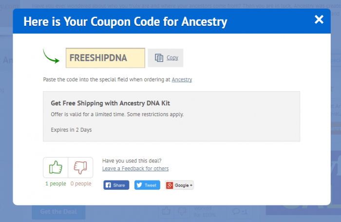 50% Off Ancestry Coupon, Promo Codes - Sept. 2022 - Giving Assistant Take 25% Off 6 Month Subscription At Ancestry.com Get 25% Off Orders At Ancestry.com Coupon Code Get 10% Off Your Entire Order Sitewide Get 50% Off AncestryByDNA Test At Ancestry.com Expired Codes and Offers Free shipping with purchase of $99 DNA kit Verified Take 20% Off Your Annual Membership Get 1 Free Gift When You Order 1 Item At ancestry.com